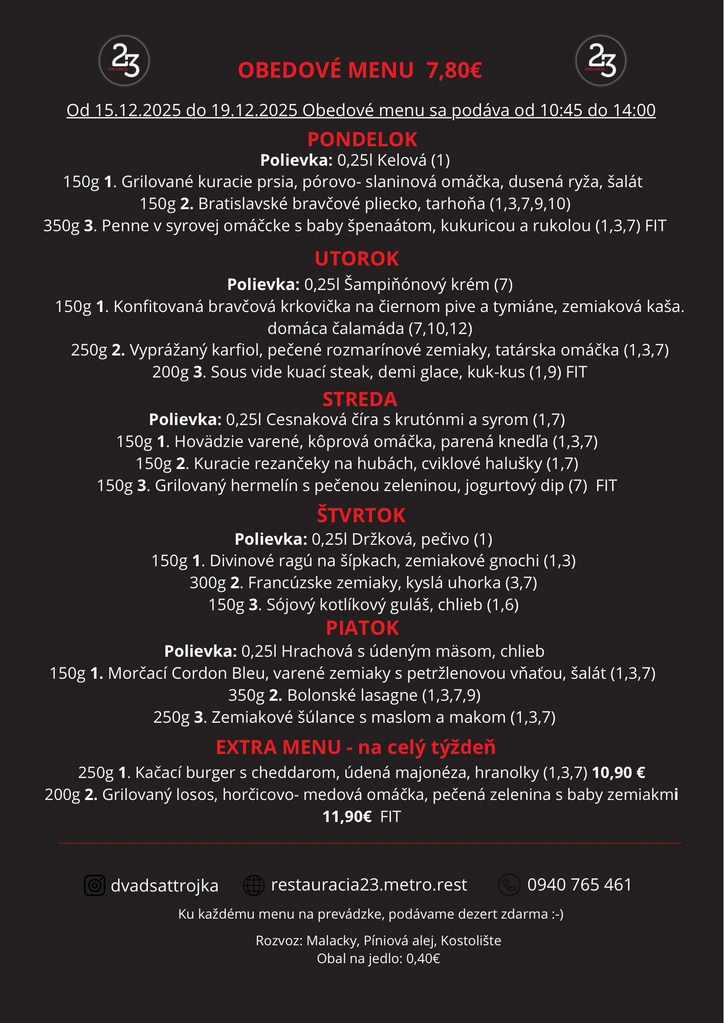 Čakajú vás klasické slovenské špeciality, ktoré si zamilujete- od chutných polievok, cez domáce pečené mäso až po sladké dezerty, ktoré vám pripomenú kuchyňu vašich starých mám.